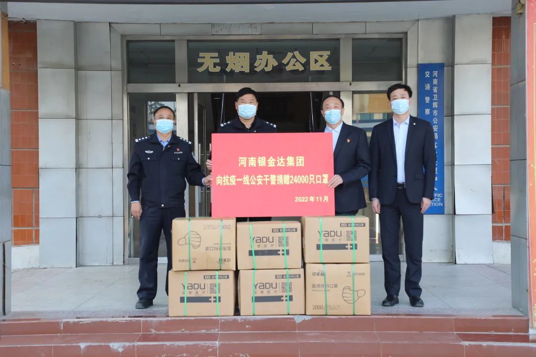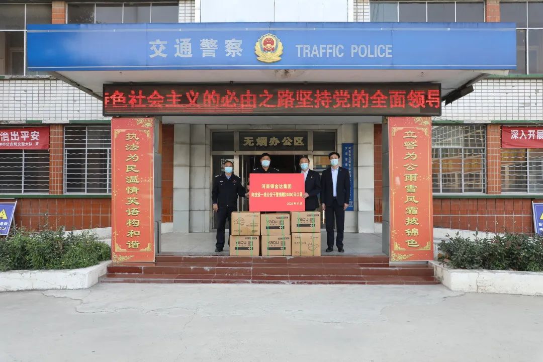 在當(dāng)前疫情嚴(yán)峻復(fù)雜的形勢下,公安干警不懼風(fēng)險(xiǎn)英勇戰(zhàn)斗在疫防一線,為守護(hù)一方平安和抗擊疫情作出了重要貢獻(xiàn)。銀金達(dá)集團(tuán)黨委書記、董事長閆銀鳳為助力公安干警抗擊疫情,委托集團(tuán)黨委副書記、工會主席楊鳳瑞和彩印公司副總經(jīng)理劉廣斌到衛(wèi)輝市公安局、衛(wèi)輝市交警大隊(duì)慰問,并捐獻(xiàn)防疫口罩2.4萬只,表達(dá)銀金達(dá)干部職工的熱誠問候。