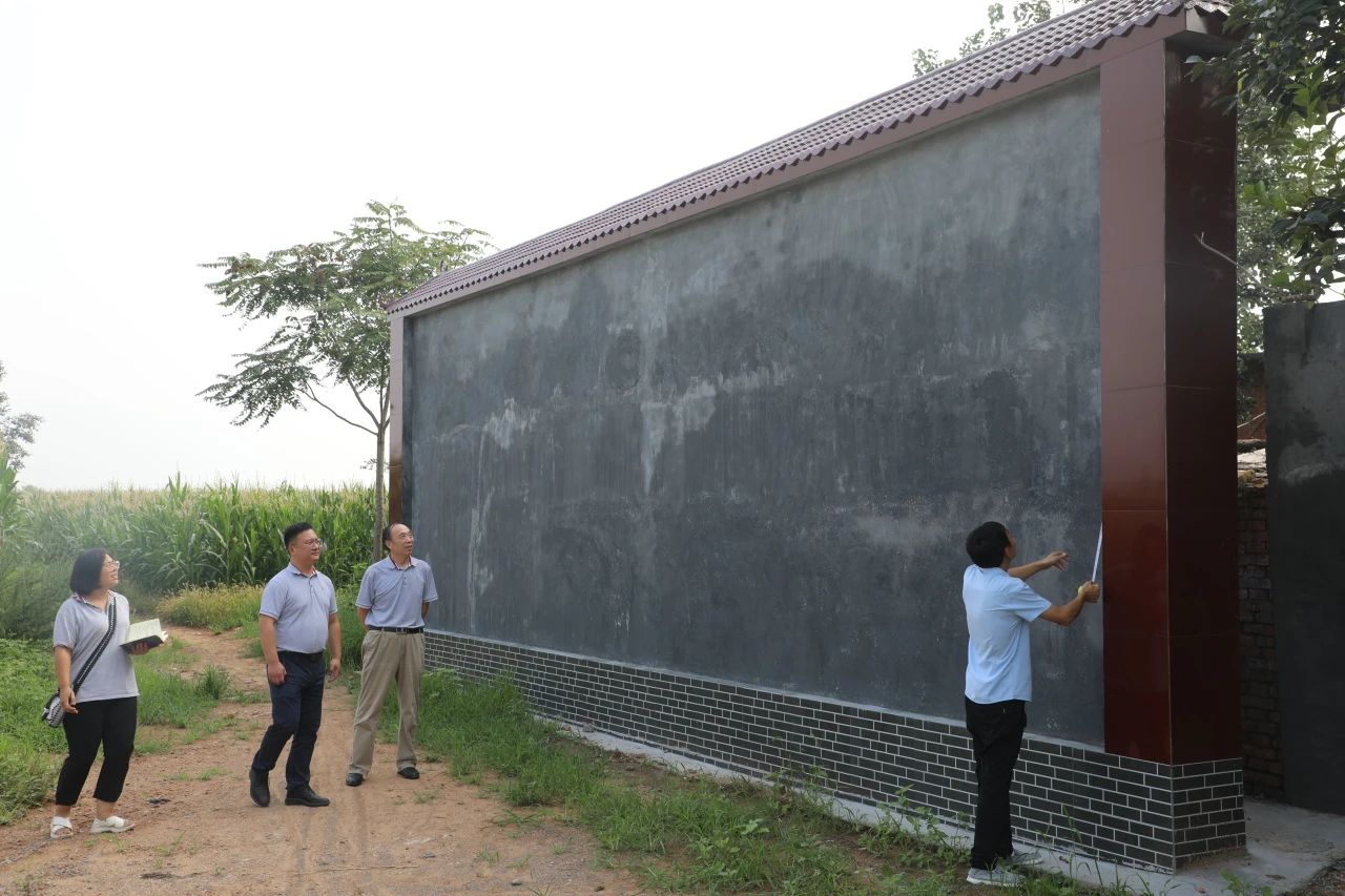 新鄉(xiāng)市職業(yè)技術學院美術教授侯壯莊、衛(wèi)輝市委黨校原副校長侯秋莊對文化墻和舞臺背景墻美術設計提出專業(yè)意見和建議。