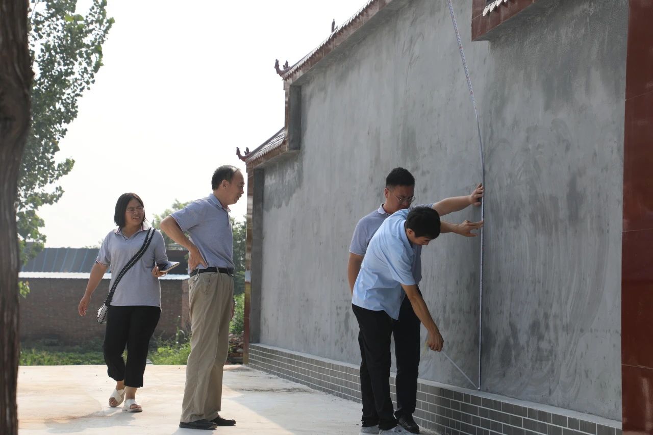 在王二莊村文化墻和文化活動廣場,楊鳳瑞一行仔細查看了項目建設情況,已建成文化廣場面積662平方米,文化墻立體面積45平方米,楊鳳瑞對項目建設質量表示滿意,并對兩個場地的后續(xù)建設方案進行討論,經現(xiàn)場測量,確定了文化墻和廣場背景墻的宣傳設計規(guī)劃。
