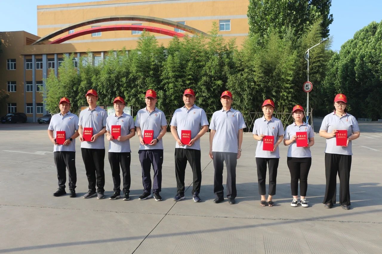 在焦海濤同志的帶領下,全體人員高舉右拳,高聲朗讀員工誓詞和行為準則,伴隨著《沒有共產黨就沒有新中國》激昂奮進的歌聲,全體人員列隊出發。